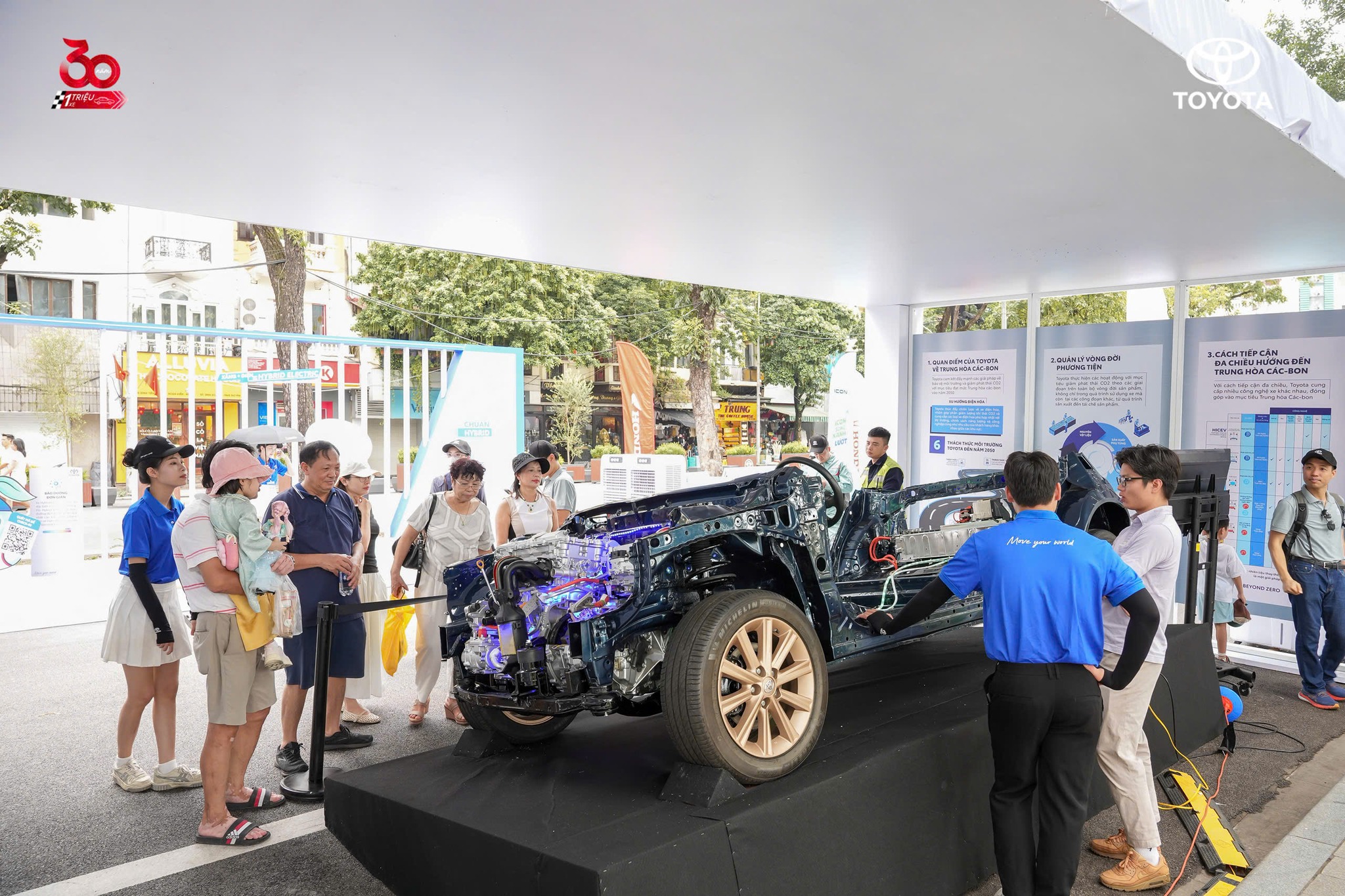 Thông qua sự kiện, khách tham dự sẽ có cơ hội tham quan khu trưng bày thành tựu 30 năm của Toyota Việt Nam và khám phá những ưu điểm vượt trội của công nghệ Hybrid như: tiết kiệm nhiên liệu, không cắm sạc, vận hành êm ái,… Bên cạnh đó là trải nghiệm tính năng an toàn Toyota Safety Sense (TSS) với công nghệ thực tế ảo, cũng như tham gia các trò chơi tương tác để nhận về nhiều phần quà thú vị.